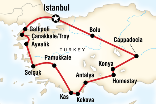 Explore one of the many underground cities in the region. Explore Konya before spending the night in a local Turkish village as a guest of a local family.