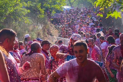 The night before we kick off with a campsite party. After we’ll head into town, where the entire village of Haro goes crazy with street parties and bar hopping, dancing and chatting and eating delicious food until the sun comes up - just in time for the wine fight! Awake early for the wine fight, wash off, chill at our pool party before heading back into town for the massive street party.
