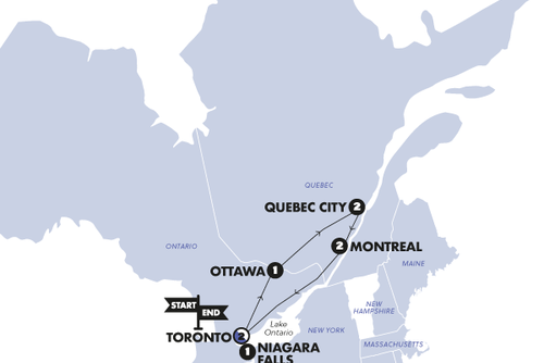 The trip will immerse you into the fun-loving capital of Ottawa, the French inspired scenes of Quebec City, the adrenaline filled experiences on offer in Montreal, and the multicultural feels of Toronto.