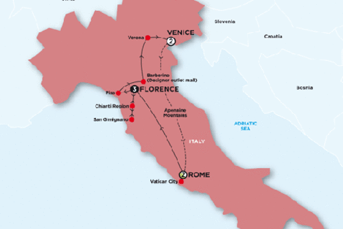 We'll see you oohing and aahing over Chianti & antipasto in a 16th century Tuscan winery, boating through the canals and islands of Venice, and learning about leather craft in the architecturally magnificent city of Florence. This is so much more than pizza & coffee.