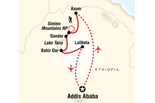 Morning flight to Addis Ababa, where the tour ends on arrival at Bole International Airport.