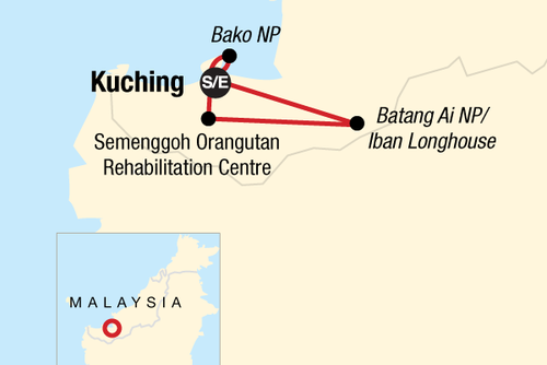 Beginning in the dazzling city of Kuching, you’ll venture deep into the wondrous Bako National Park — home to odd-looking proboscis monkeys and the carnivorous pitcher plant. Next, it’s on to Batang Ai to spend the night in a fascinating Iban longhouse for an eye-opening glimpse into how Borneo's indigenous peoples live deep in the heart of the jungle. Sarawak is an amazingly out-there place. Come join us to discover how and why.