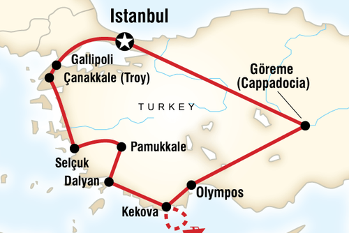 This tour starts and finishes in the ancient city of Istanbul and you will travel in a loop seeing the best historical and cultural places on route.