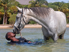The majority of horses in Mozambique were rescued from Zimbabwe in a time of political unrest and violence, and are now living happily, cantering up and down the beach and taking dips in the sea.